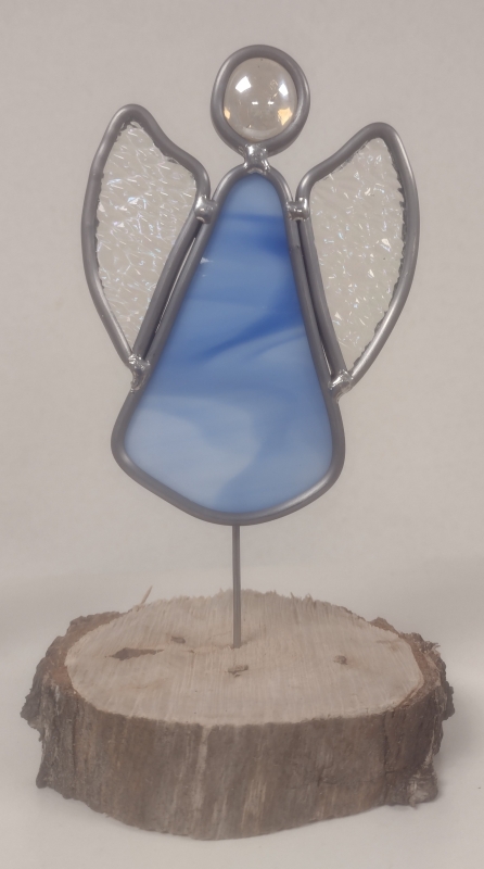 Engeltje op boomschijfje 16 tot 20 cm hoog.