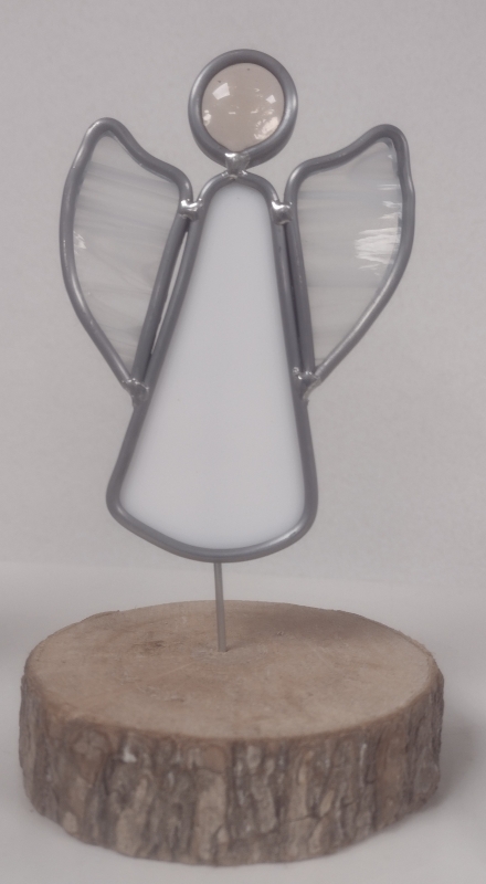 Engeltje op boomschijfje 16 tot 20 cm hoog.