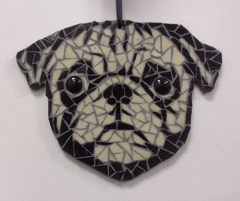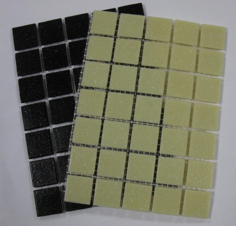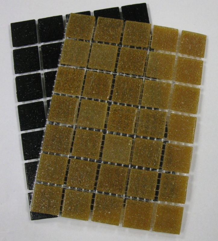 Verder zitten er glasmozaiek steentjes, lijm en voegsel in.