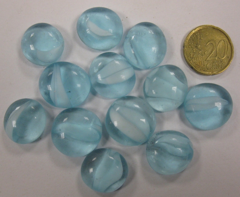 12 glasnuggets met strepen erin, zogenaamde kattenogen.