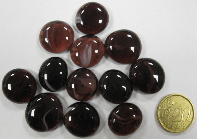 12 glasnuggets met strepen erin, zogenaamde kattenogen.