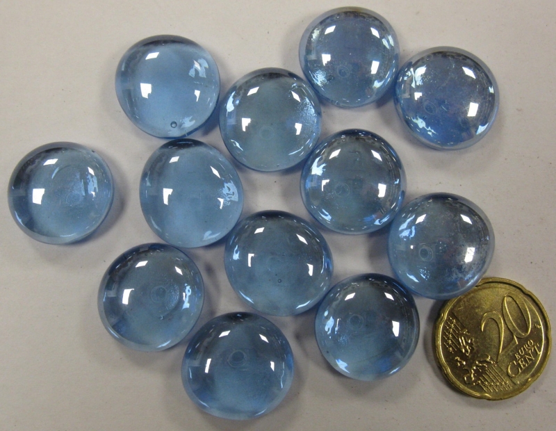 kijk voor de grootte naar de 20 eurocent munt die bij de glasnuggets ligt.